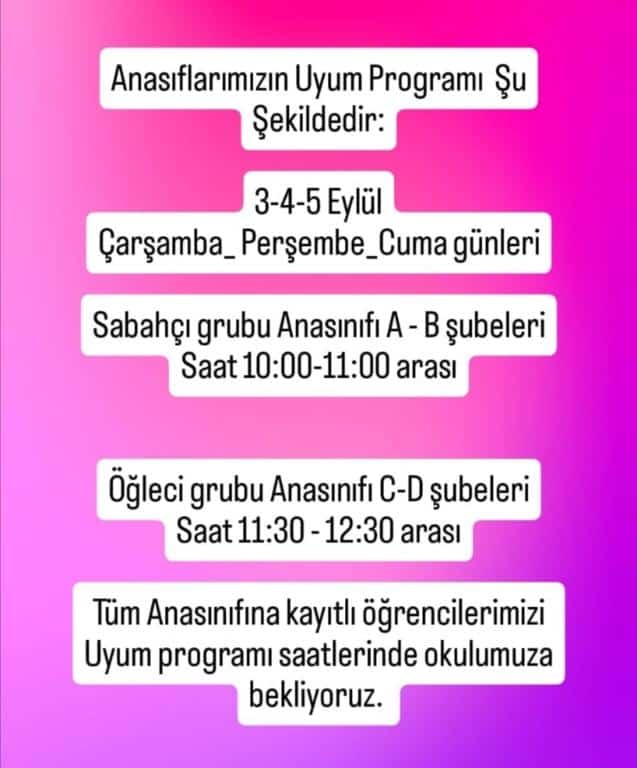 Uyum programı açıklanmış ve 1.Sınıflar kura çekimi...